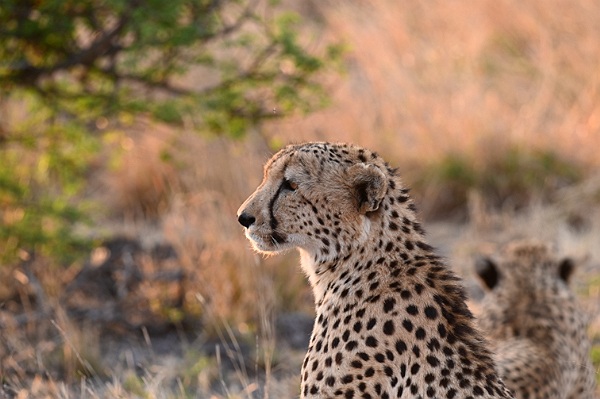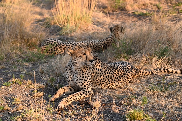 De resterende tijd zitten we weer heerlijk in de tuin of lopen even rond met de camera. Lekker relaxen dus. Voor dat we het beseffen is het alweer 15:15 uur, tijd voor een drankje en een snack alvorens we weer vertrekken voor de volgende game drive. Wederom naar een gebied waar we nog niet geweest zijn. Eigenlijk beginnen we een beetje verwend te raken, misschien omdat de vegetatie in onze ogen weer hetzelfde is. Maar we zien weer de mooiste dieren, in het bijzonder een aantal neushoorns. Nadat Jodi op een gegeven moment zelfs uitstapt om naar sporen te zoeken en we van het pad af gaan zien we in het gras twee cheeta's liggen. Jachtluipaarden die al heel lang op ons verlanglijstje staan. Vooral Ans is een beetje emotioneel bij deze ontmoeting. Zo vaak naar gezocht en nu zien we ze van heel dichtbij. Geen verrassing waarschijnlijk dat we hier veel foto's van maken. Uiteindelijk wordt het toch een hele leuke rit.